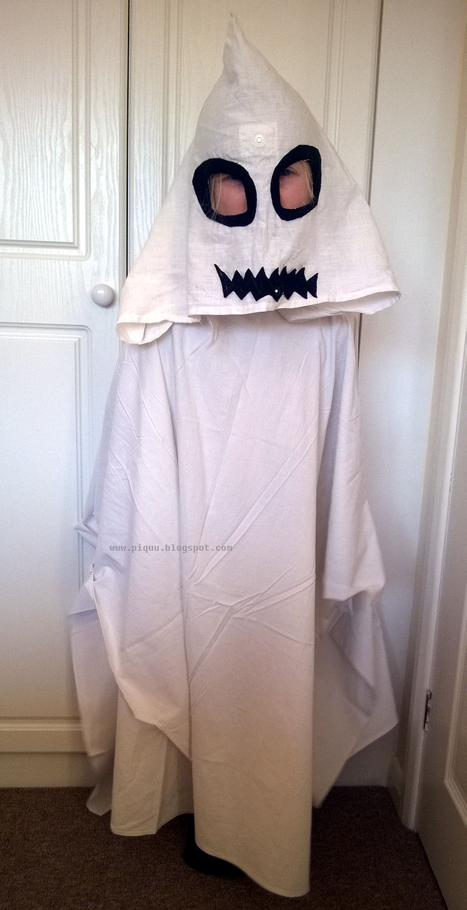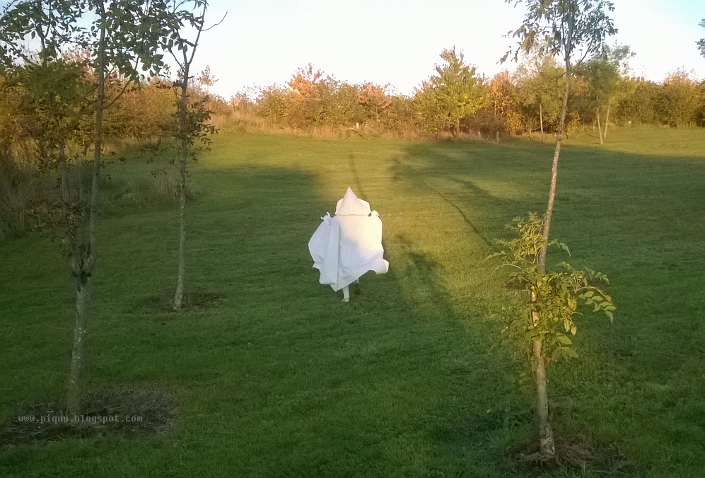 Na nadchodzące Halloween przygotowałam dla mej córki kostium ducha. Wykorzystałam starą pościel, kilka kawałków polaru, plastikowe zatrzaski (regulacja wielkości kaptura) i wyobraźnię :D Efekt? Fantastyczny :D