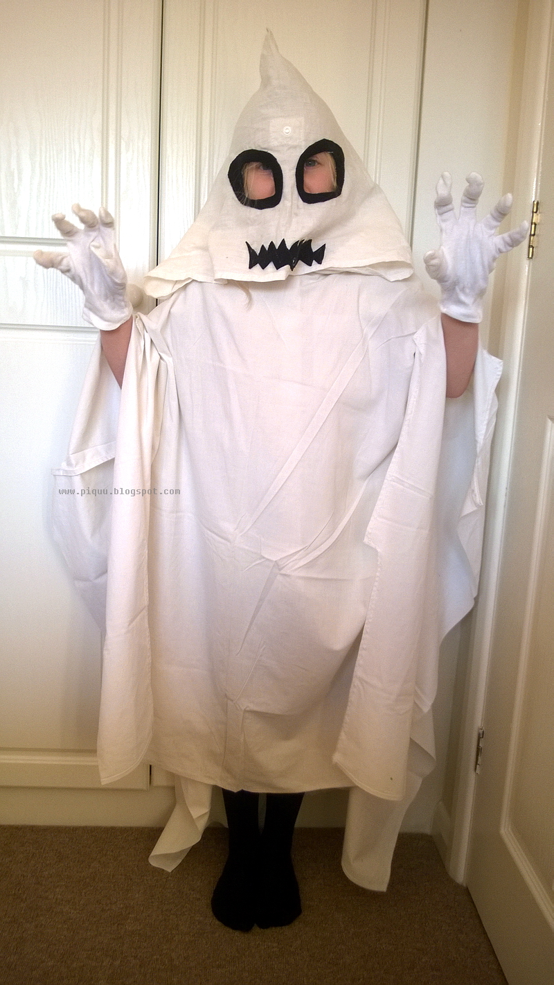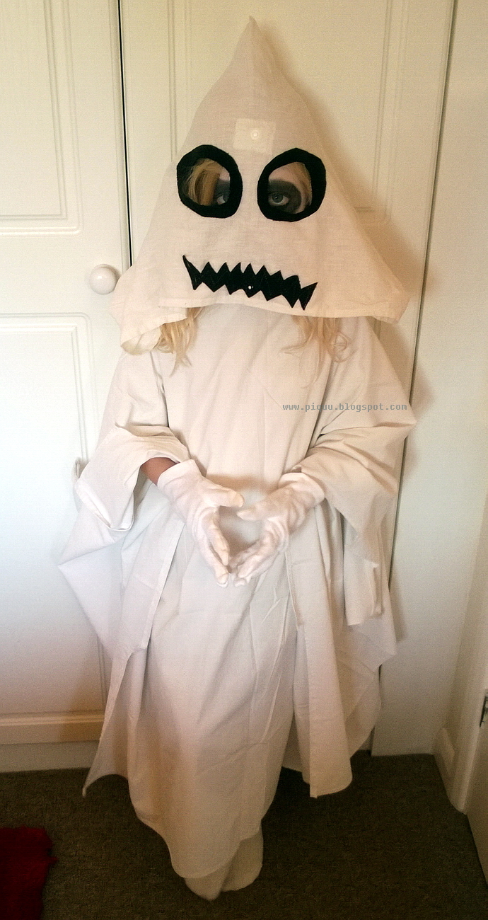 Na nadchodzące Halloween przygotowałam dla mej córki kostium ducha. Wykorzystałam starą pościel, kilka kawałków polaru, plastikowe zatrzaski (regulacja wielkości kaptura) i wyobraźnię :D Efekt? Fantastyczny :D