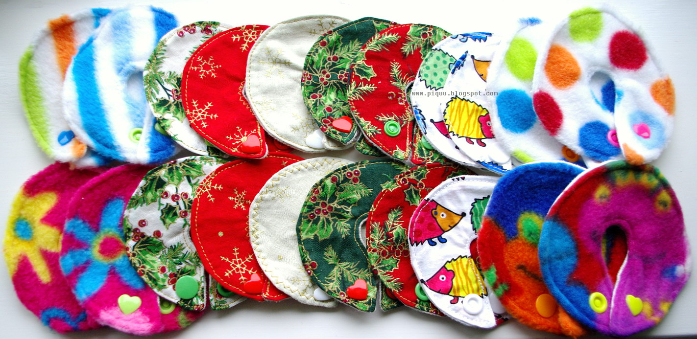coloured pads with soft fleece. They are a little larger than the other, perfectly absorbent so the nights are calm and safe. Niezwykłe rzeczy dla niezwykłej dziewczynki. Bożonarodzeniowe pady dla Lilianny Walecznej. Wykończone złotem i złotą nitką oraz zatrzaskami w kształcie serduszka. Jako dodatek kilka kolorowych padów z miękkiego polarku. Są one troszkę większe niż pozostałe, doskonale chłonne po to, by noc była spokojna i bezpieczna.